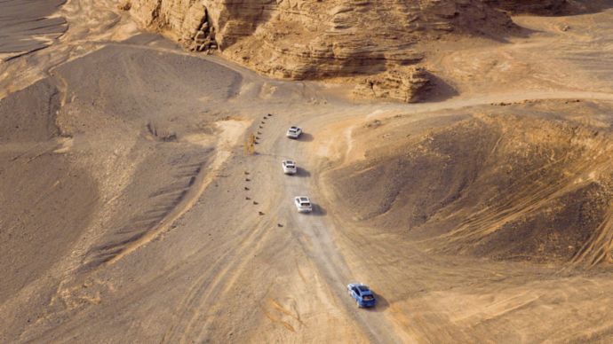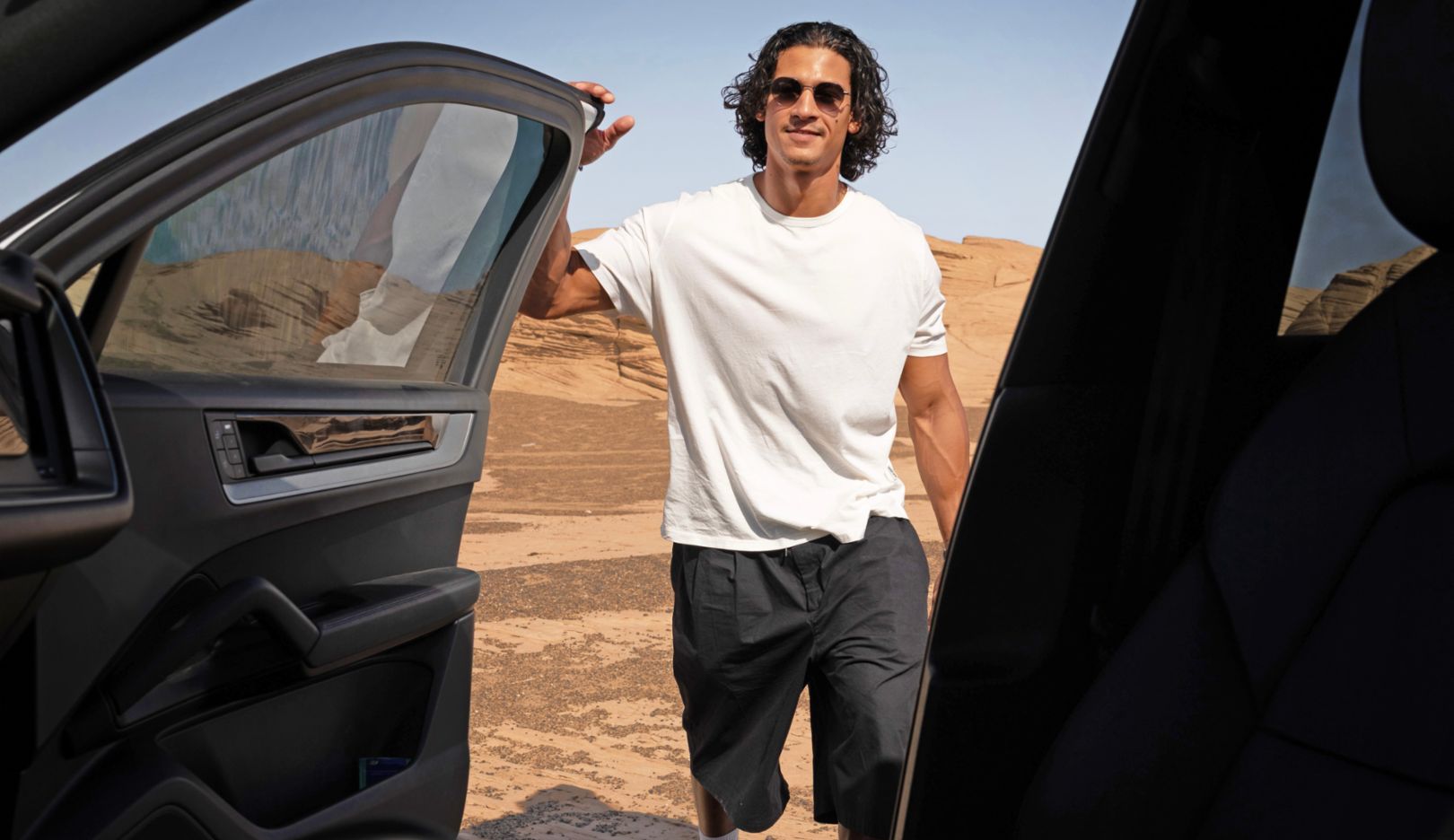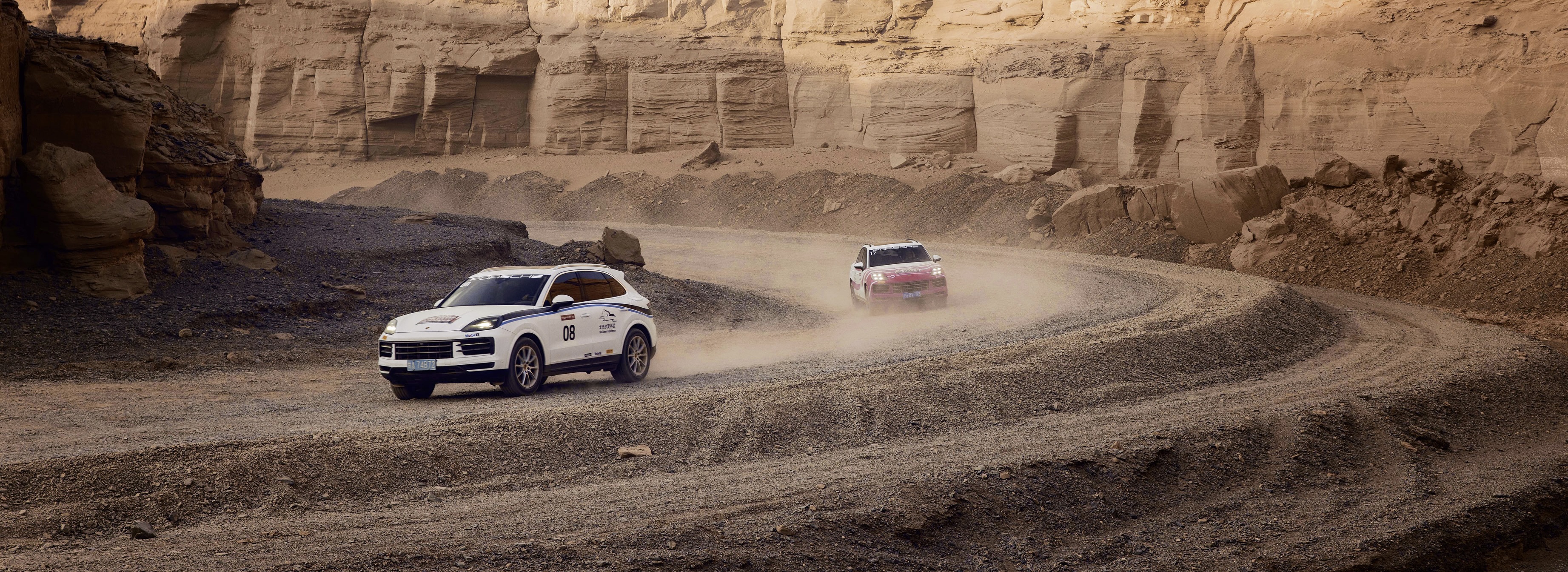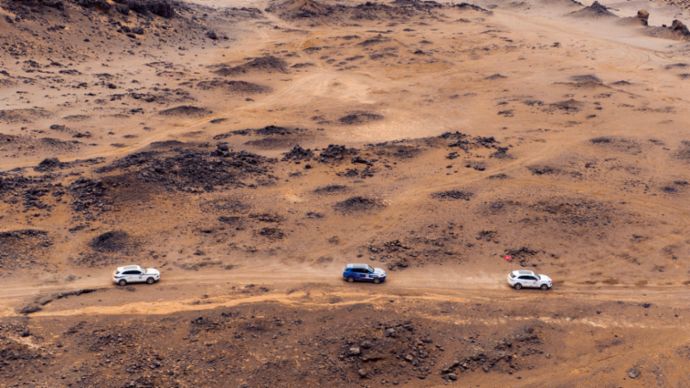 Die Porsche-SUVs Cayenne und Macan können in der Wüste ihre Offroad-Qualitäten unter Beweis stellen.„Was ich an meinem Job als Schauspieler liebe: Du bist fortwährend mit neuen Challenges konfrontiert.“ Emilio Sakraya
