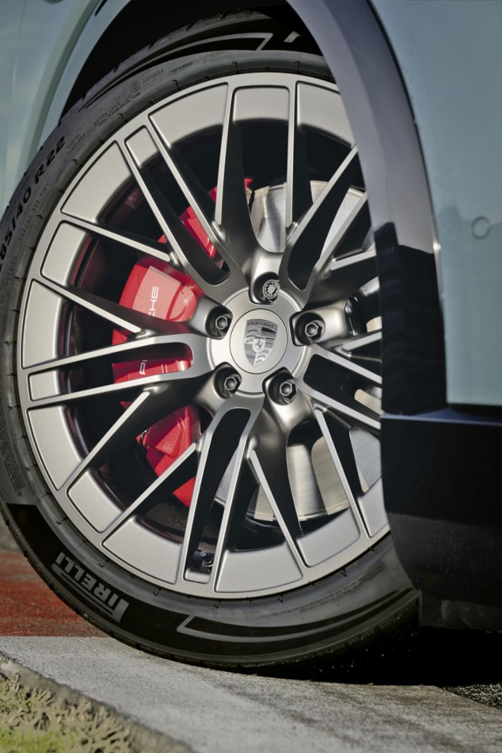 „Was mich bei Porsche immer fasziniert, ist die Bremsleistung“, schwärmt Thomas Preining. Serienmäßig ist der Cayenne Turbo mit Graugussbremsen in der aktuell größten Bremsendimension bei Porsche bestückt, einer 10-Kolben-Festsattelbremse mit 420-mm-Bremsscheiben vorn. An der Hinterachse verzögert eine 370-mm-4-Kolben-Festsattelbremse. Optional zur Wahl steht die bekannte Porsche Hochleistungsbremse Porsche Ceramic Composite Brake (PCCB).Dabei fuhr Thomas Preining schon früh Erfolge ein. Fünfmal war er Juniormeister im Kartfahren und holte sich mit gerade einmal 20 Jahren den Gesamtsieg im Porsche Carrera Cup Deutschland. Seit 2022 startet er für Manthey Racing in der DTM. Gleich in seiner Debütsaison gelang ihm als erstem Porsche-Piloten ein Sieg auf dem Norisring. 2023 sicherte er der Marke ihren ersten DTM‑Titel. In der neuen Saison macht Thomas Preining sich daran, diesen Erfolg zu wiederholen.