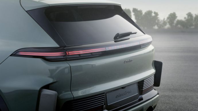„Die neuen ‚Heckflossen‘ sind eine wirklich innovative Lösung.“ Ab 55 Stundenkilometern fahren die aktiven Aeroblades automatisch aus. Sie verbessern den cw-Wert um 0,01 und damit die Reichweite. Als Hommage an die Ingenieurskunst hinter dem cleveren Feature sind im ausgefahrenen Zustand die GPS-Koordinaten des Windkanals in Weissach und der Schriftzug „PORSCHE ACTIVE AERO“ zu sehen. Denn bei der Entwicklung des neuen Modells wurde intensiv an der Aerodynamik gefeilt. Das Ergebnis: mit einem Luftwiderstand von 0,25 cw gehört der Cayenne Electric zur Spitzengruppe seiner Klasse.