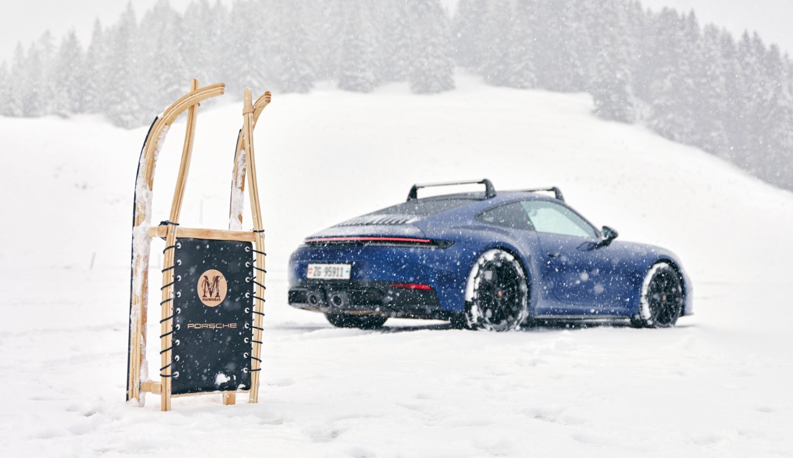911 Carera 4 GTS mit dem Schlitten von Morerod.
