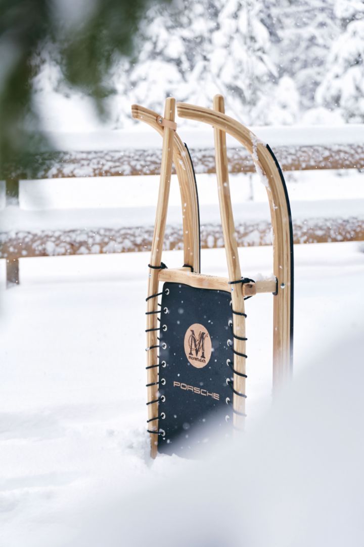 Mit dem holzigen Duft der Schreinerei in der Nase, ordentlich Sägemehl an den Schuhen – und im Fussraum – und einem handgemachten Schlitten-Unikat auf dem Basisträger aus dem Porsche Tequipment-Programm machen wir uns auf die Rückreise durch die Winterlandschaft. Der 911 Carrera 4 GTS zeigt auf dem Weg in die Berge, dass er kein Sportwagen ist, der auf den Frühling wartet. Es wirkt eher, als hätte der Winter auf ihn gewartet: Perfekt dosierbares Drehmoment dank t-hybrid-Technik, unerschütterliche Traktion dank aktiv geregeltem Allradantrieb und eine Lenkung, die sich anfühlt, als würde man das Auto mit Gedanken lenken. Das Resultat aus Hingabe, Präzision und der Leidenschaft für Geschwindigkeit. Dass sich diese Attribute auch auf einen Holzschlitten übertragen lassen, beweist der Einsitzer von Morerod, den wir auf dem Weg ins Tal natürlich ausgiebig testen. Das Fazit: Den Titel «Sportwagenbauer unter den Schlittenherstellern» darf sich die Manufaktur in Les Diablerets mit Fug und Recht auf die Fahnen schreiben.