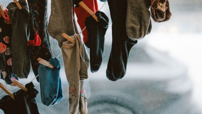 昨年87人が交通事故死したことを悼み、窓には現在87足の靴下が吊るされている。