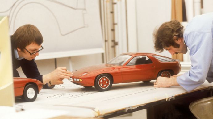1975年にルドルフ・ライディングの後継としてフォルクスワーゲンの取締役会会長に就任したトーニ・シュミュッカーは、EA 425プロジェクトを中止させた。それには、1970年 代に起こった第1次オイルショックと、それに連動した顧客による買い控え、さらにはモデル政策上の理由が一役買っていた。当時のVWは、シロッコによってゴルフベースのスポーツクーペを開発していたのだ。この時点でポルシェは、プロジェクトを買い戻す、つまり開発費を引き受け、自らの手だけで本物のポルシェに仕上げる決断を下す。「デザインとプロポーションは私たちにとって非常に調和がとれていたので、コンセプト自体を変更することなく仕事を続けることができました」とラガーイ。「いずれにせよ、開発段階がもうだいぶ進んでいましたから、変えたくても変えることはできなかったでしょう」。また、ポルシェのデザインDNAは、1970年 代には現在ほど「明確に成文化」されていなかったと彼は付け加える。基本的に、伝統的なデザインランゲージとして参照できるものは911だけであったわけだから、新しいデザインが「逸脱したデザイン」と思われることもなかったのだ。