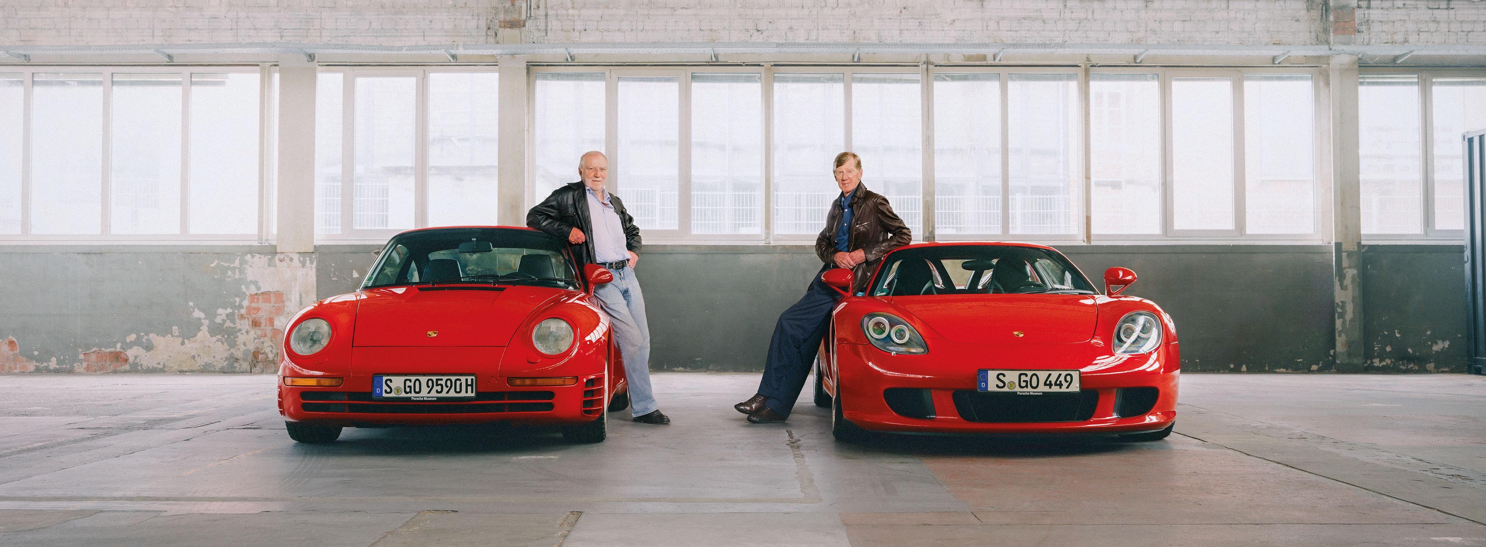 959는 등장과 동시에 당시 세계에서 가장 빠른 양산형 도로 주행용 스포츠카로 포르쉐 역사에 이름을 새겼다. 슈퍼 스포츠카 성능을 이어받은 카레라 GT도 올해로 25주년을 맞는다. 탄소 섬유 차체에 미드십 V10 엔진을 조합했으며, 처음부터 도로 주행이 가능한 모터스포츠 유전자를 품은 자동차를 목표로 설계되었다. 이 두 자동차는 기념일을 축하하기 위해 과거 동반자들과 재회했다. 포르쉐에서 40년 동안 테스트 드라이버와 엔지니어로 근무한 롤란트 쿠스마울(왼쪽)은 이미 1986년 파리-다카르 랠리에서 959를 직접 몰았다. 또한 포르쉐의 개발 드라이버이자 랠리의 전설인 발터 뢰를은 카레라 GT 개발에 핵심적인 역할을 맡았다. 그는 2000년 파리에서 양산형 슈퍼 스포츠카를 세계 최초로 공개할 때, 프로토타입을 운전하며 샤를 드골 광장에서 샹젤리제를 거쳐 루브르 박물관까지 운전했다.