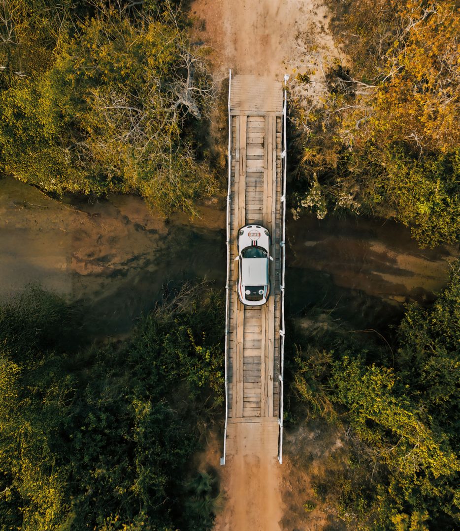 Przy brazylijskiej araukarii 911 Dakar wygląda niemal jak model samochodu. Drzewo rośnie do 50 metrów, a średnica jego pnia przekracza dwa metry.Tak wspomina to wydarzenie małżeństwo Piotto Vogt kilka miesięcy później. To był znamienny moment, zaraz na początku rajdu – i potwierdzenie, że dokonali właściwego wyboru, decydując się na Porsche Dakar. W rajdzie liczącym ponad 3482 kilometrów przez nieujarzmioną przyrodę Brazylii startowali już czterokrotnie, korzystając z pojazdów UTV. Tym razem całą rodziną wzięli udział za kierownicą 911 Dakar i SUV-a. Susele i Fredy zmieniali się w obu pojazdach, a syn João Pedro miał wolny wybór. Kategoria „Expedition” odbywa się poza oficjalną klasyfikacją i umożliwia startującym przeżycie off-roadowej przygody równolegle do wyznaczonej trasy. Podróż Piotto Vogt była znacznie dłuższa niż oficjalna część rajdu: wyruszyli bowiem z Campo Largo, ich rodzinnego miasta na południowym wschodzie kraju. Stamtąd pojechali do Goiânia, na południowy zachód od stolicy Brasílii, gdzie rozpoczął się rajd, pokonując drogą lądową blisko 1200 kilometrów. Własnym autem wrócili też do domu po przekroczeniu linii mety w Marechal Deodoro na wybrzeżu Alagoas. Rezultat: 7440 kilometrów w dwa tygodnie – czysta pasja na czterech kołach.