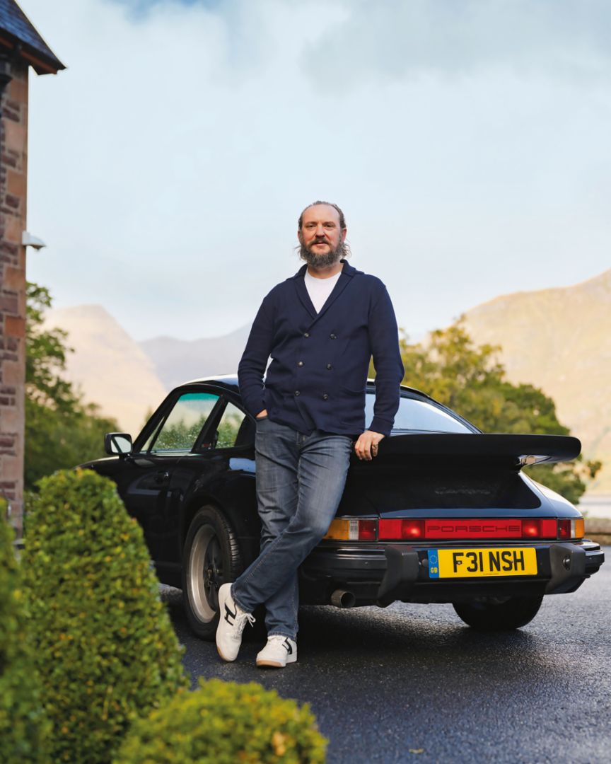 Dan Rose-Bristow, właściciel hotelu Torridon, w towarzystwie swojego 911 Carrera 3.2 Coupé (serii G) z 1989 roku.Poranek następnego dnia rozpoczynamy od przejazdu przez groblę Kyle of Tongue. Spotykamy tu wiele gatunków dzikich zwierząt: foki, wydry, a nawet orły przednie i rybołowy. Jednopasmowa droga wije się przez krajobraz. Drogi stają się szersze i bardziej przystępne, gdy kierujemy się na południe w stronę Kylesku Bridge, jednego z najbardziej popularnych miejsc na trasie. Nasz ostatni cel tego dnia to hotel Torridon położony w małej miejscowości Achnasheen. Czeka tam na nas właściciel Dan Rose-Bristow i jego ukochane 911 Carrera 3.2 Coupé (serii G), rocznik 1989. Spotykamy się przy ładowarce Porsche Destination Charger. Podczas ładowania Macana udajemy się do baru, który w pełni potwierdza opinię o sławie Highlands. „Kampania marketingowa na rzecz NC 500 była fenomenalna i z pewnością przyciągnęła tutaj więcej właścicieli pięknych samochodów”, mówi Dan. „Zauważamy to zwłaszcza poza sezonem – to o wiele bardziej ożywiony i prawdopodobnie najlepszy czas dla NC 500. Mniej komarów, mniej samochodów kempingowych”. Ważne jest, jak podkreśla, zrozumienie stylu życia tutejszych mieszkańców przez turystów. „Z własnego doświadczenia mogę powiedzieć, że nie trzeba koniecznie szybko jeździć Porsche, aby naprawdę cieszyć się tutaj drogami”.