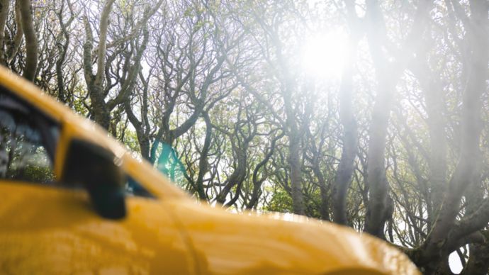 lasy przy zamku Mey zapewniają ochronę przed silnymi wiatrami wiejącymi często od strony Pentland Firth.Dokładny sens słów Sutherland zaczynamy rozumieć podczas kolejnego przystanku na naszej trasie. Macan płynnie sunie wzdłuż wybrzeża do elektrowni pływowej MeyGen, gdzie można poczuć nieco inny rodzaj energii i entuzjazmu. Ta zlokalizowana na północnym wybrzeżu, największa elektrownia pływowa świata wytwarza od 2016 roku zrównoważoną energię, wykorzystując do tego prądy morskie.