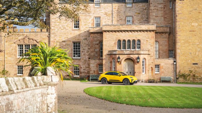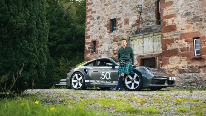 Historia wzoru tartanu sięga w Porsche lat siedemdziesiątych ubiegłego wieku, gdy materiał po raz pierwszy zastosowano we wnętrzu modelu 911. Śladów tego szkockiego wzoru poszukujemy w zamku Leod – siedzibie klanu Mackenzie. Oprócz Macana jest tam z nami 911 Turbo w jubileuszowej wersji 50 Years, którego wnętrze zdobi tartan Weathered Dress Mackenzie. W rozmowie z wicehrabią Tarbatem oraz jego ojcem, hrabią Cromartie i przywódcą klanu Mackenzie, dowiadujemy się czegoś więcej o znaczeniu klanów. „Nie możemy już maszerować drogą A9, niosąc w dłoniach miecze i muszkiety”, mówi hrabia z przymrużeniem oka. „Ale za pomocą naszego tartanu możemy pokazać, że należymy do klanu. Klany jednoczą ludzi bez względu na kolor skóry, religię czy przekonania polityczne”.