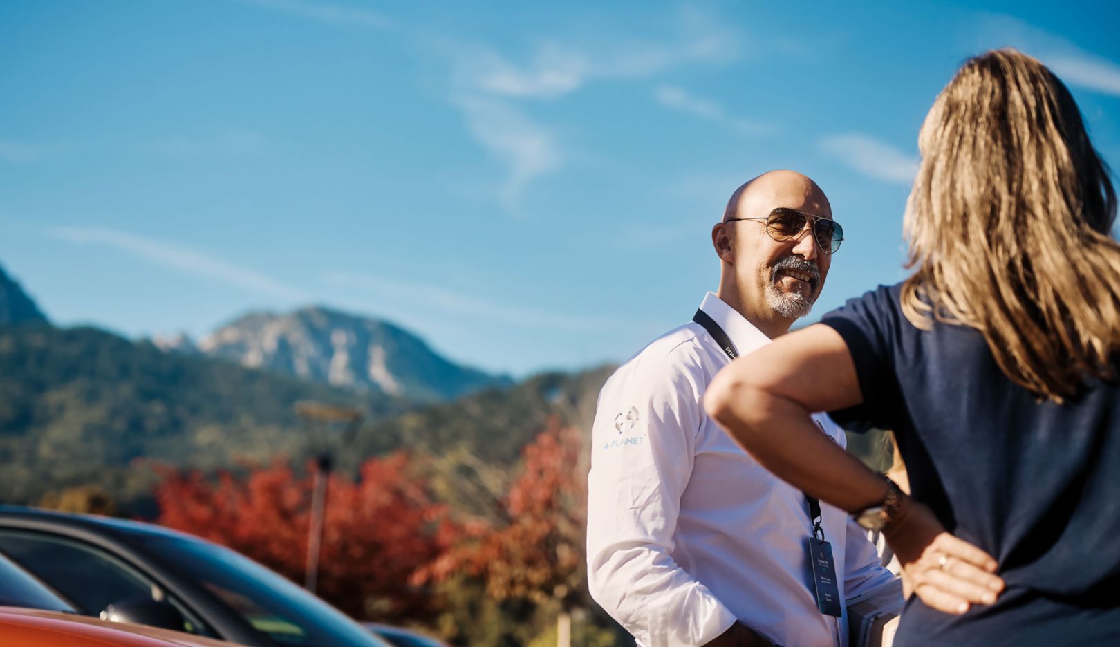 比預定時間延遲兩小時出發,並非因為充電耗時,而是所有人都沈浸於品味美食、相聚時光,以及這個無拘無束的週六午後。當車隊終於啟程,隨即迎來本日最令人驚豔的路段。前往南提羅爾北部斯泰爾津的公路充滿駕馭樂趣,持續攀升的雙線道蜿蜒曲折,每一次加速、重心轉移與精準煞車,都讓人真切感受保時捷跑車的實力。隨著海拔逐漸攀升至 1,374 公尺的布倫納山口,車隊沿著阿爾卑斯山脊從義大利駛入奧地利,最終抵達德國邊境。短暫穿越德國境內後,朝著薩爾斯堡展開最後衝刺,左側基姆湖波光粼粼,右側基姆高阿爾卑斯山脈雄偉壯麗,構成絕美背景。
