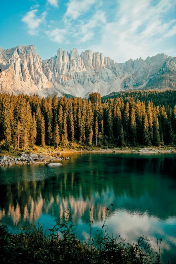 此刻,這支嶄新車隊正首度共同馳騁。歷經約 250 公里、近三小時的車程後,來到中繼點——南提羅爾的布里克森 (Brixen)。我們乘坐的 Macan Turbo 駛入東向三線道高速公路,隨著太陽逐漸高昇,氣溫維持於舒適的 28 度,綿密的雲朵點綴著藍天。窗外掠過甜菜與玉米田,葡萄園與柏樹列隊相迎。隊伍來到加達湖東側的小鎮阿維奧 (Avio),山谷漸窄,首座古堡矗立於山腰;繼續北行,雖偶遇車陣,但導航系統即時引導至平行高速公路。於是,我們終於迎來適合保時捷馳騁的路線,開始享受暢行無阻的蜿蜒開放路段。隨後,多洛米蒂山脈的壯闊全景緩緩展現在眼前,此刻的愉悅駕駛體驗源自兩個層面——腳下的豐沛電能力道,以及眼前鬼斧神工的自然奇觀。