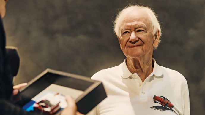 週日上午的重頭戲,是參觀漢斯-彼得·保時捷打造的夢想工廠——位於薩爾斯堡近郊的體驗博物館。作為創辦人費迪南·保時捷之孫,他將畢生收藏向大眾分享,不僅親自迎接每位車友,輕抱起孩童合影,更親切滿足所有車友的自拍心願。來自羅馬的電影攝影師丹尼爾·馬薩切西 (Daniele Massaccesi) 在展廳中流連忘返。他曾與導演史蒂芬·史匹柏合作《慕尼黑》(Munich),並與雷利·史考特維持 25 年合作關係(《拿破崙》(Napoleon)、《Gucci:豪門謀殺案》(House of Gucci)、《人魔》(Hannibal)),其他參與作品包括《駭客任務:復活》(Matrix Resurrections)、《亞瑟王》(King Arthur)、《英倫情人》(The English Patient)。「過去我總駕駛柴油越野車,」他分享道,「但某天我突然領略到,未來屬於電能世代。保時捷勇於突破傳統的魄力令我著迷,讓我渴望成為革新之路的一份子。」